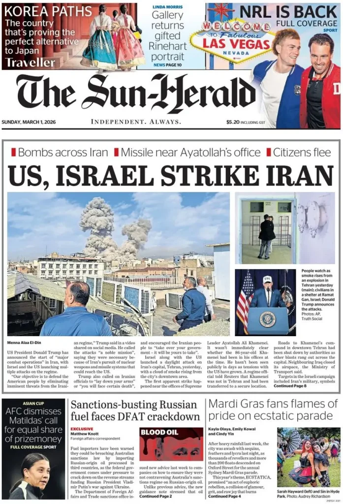 The Observer leads on the killing of Iran’s supreme leader Ayatollah Ali Khamenei following airstrikes and says President Trump has called on the Iranian people to overthrow the regime.