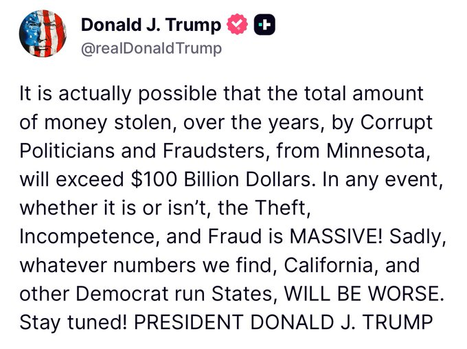 Claims Massive Fraud: Alleges “billions” are missing from Minnesota and makes unverified claims regarding Rep. Ilhan Omar’s finances.