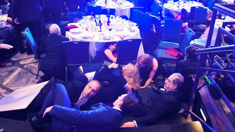 Dinner attendees ducked under tables as what sounded like gunshots rang out somewhere nearby the ballroom where the dinner is taking place at the Washington Hilton.